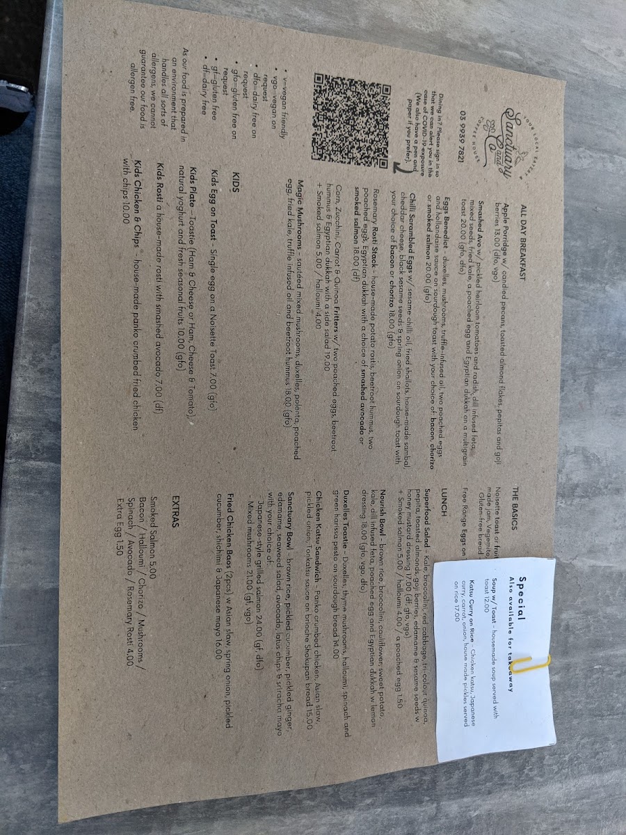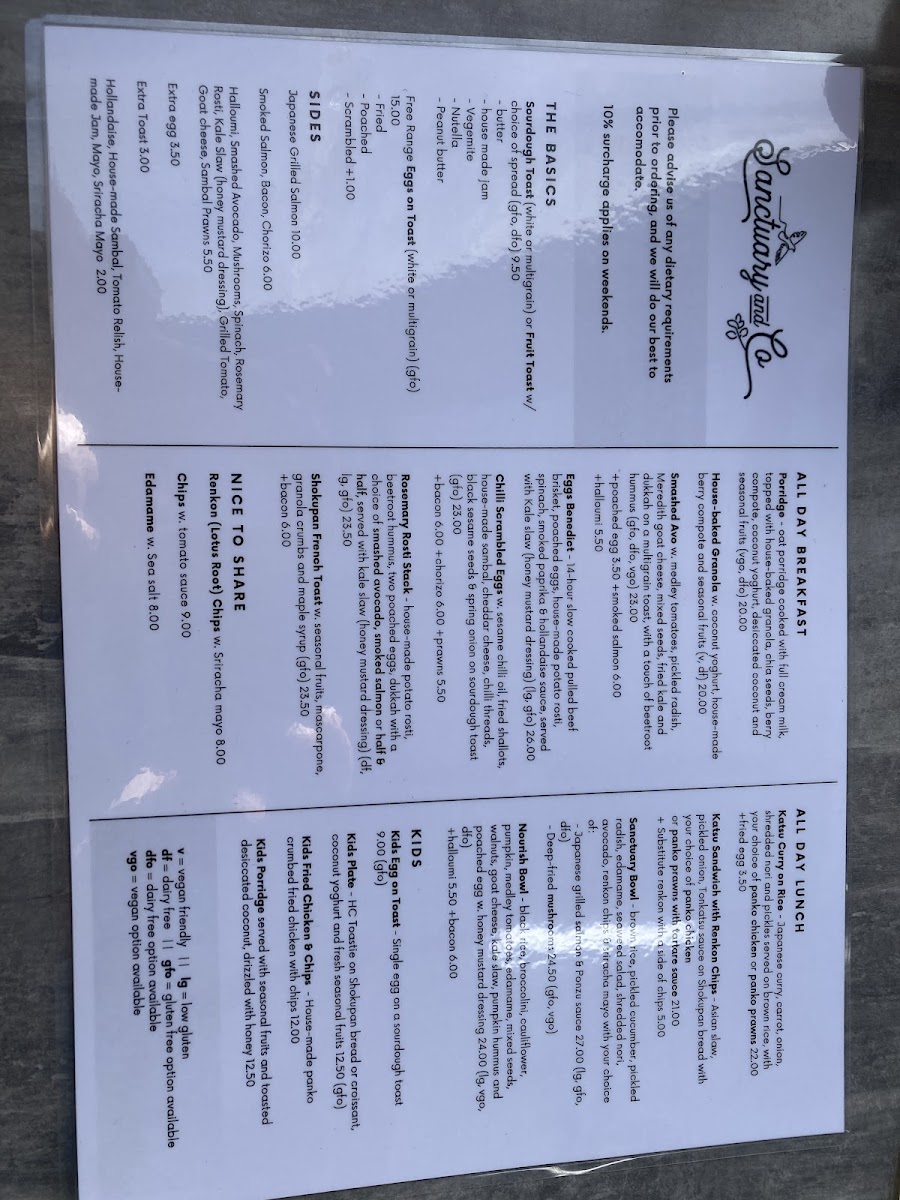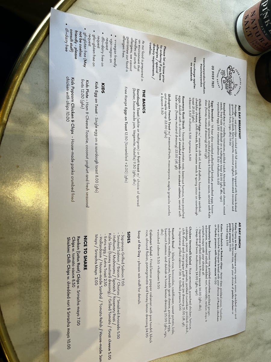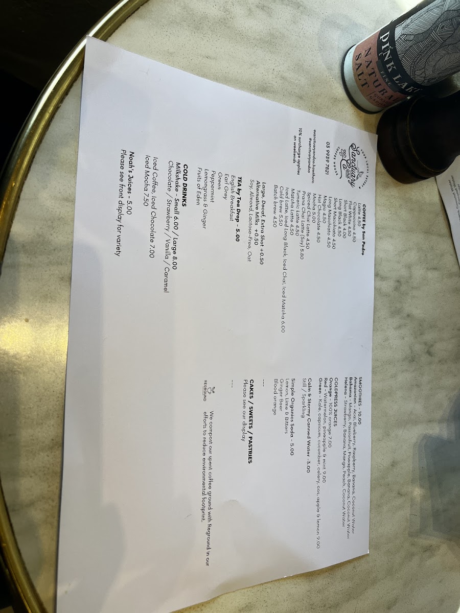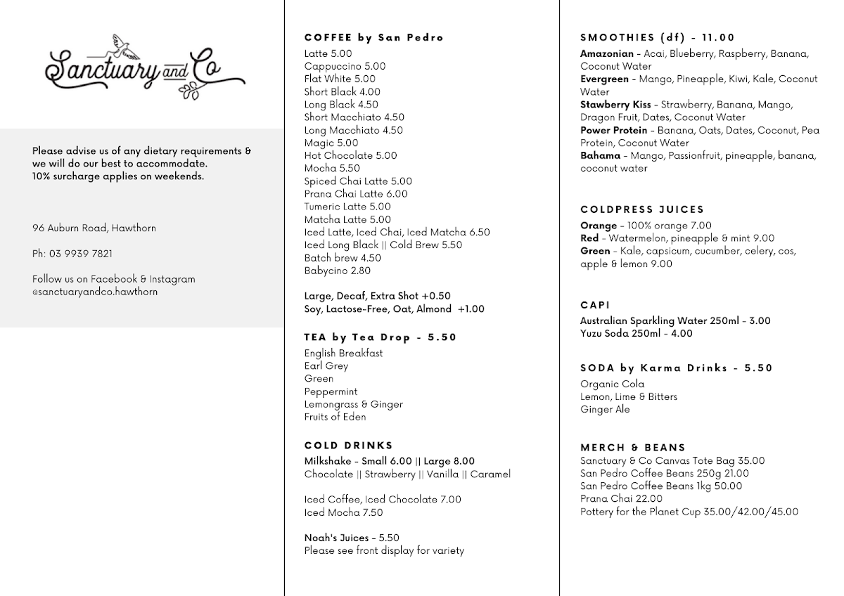 Sanctuary & Co Menu